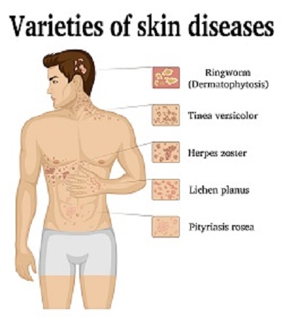 Skin yeast infections include tinea, ringworm, athlete’s foot, jock itch, dandruff, unexplained rashes and skin yeast